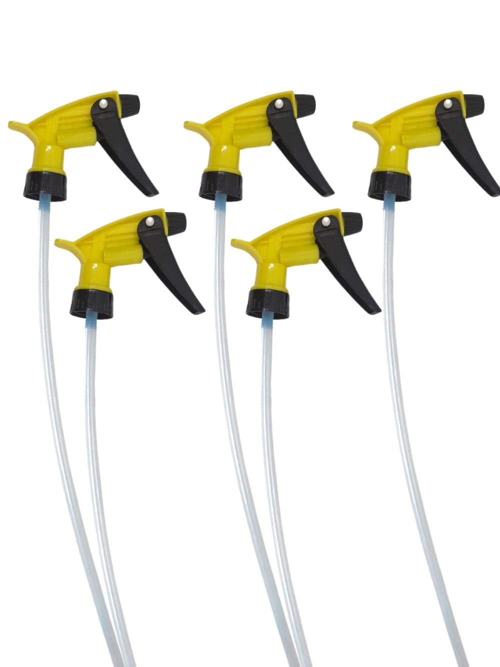 Kimyasala Dayanıklı Triger Sprey Başlık - Sarı, Fısfıs Sprey Başlığı 1 Lt uyumlu 5 adet fısfıs sprey başlığı, bidona takılarak su püskürtmek için tasarlanmış ergonomik ve dayanıklı bir üründür. 5 adet set halinde satılan bu sprey başlık, özellikle 1 lt şişe uyumlu olup hem profesyonel hem de günlük kullanımlarda rahatlıkla kullanılabilir.