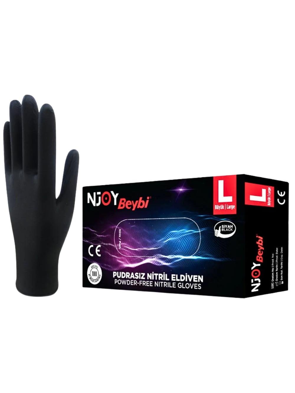 Pudrasız ve siyah renkli Njoy nitril eldivenler, hijyen ve konforu bir arada sunar. Gıda, sağlık ve güzellik sektörlerinde güvenle kullanılabilir. Tek kullanımlık, lateks içermeyen yapısıyla cilt dostudur. L beden ölçüsünde ve 100 adetlik kutularda temin edilebilir.