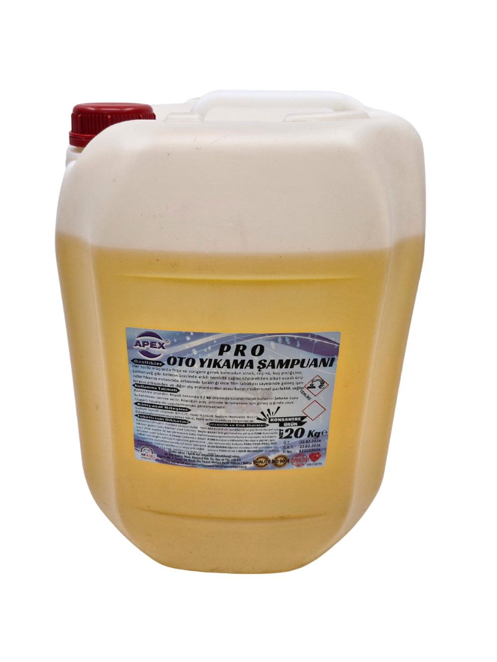 Araç Köpük Şampuanı 20 Kg, oto yıkama şampuanı olarak 1/60 konsantre formüle sahiptir ve araç yıkamada ideal çözümdür. Bu 20 kg'lık şampuan, her türlü araçta fırça veya süngere ihtiyaç duymadan sinek, reçine, toz, çamur ve yağ gibi zorlu kirleri etkili şekilde temizler.